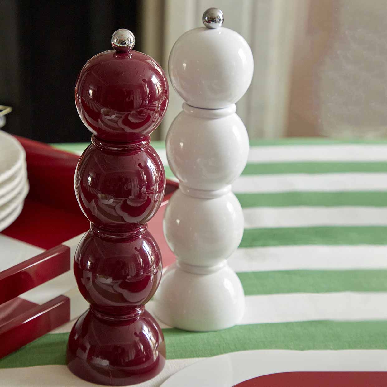 An Addison Ross exclusive design, our white lacquered bobbin shaped mill comes with both an S and a P stainless steel screw knob so you can decide for yourself whether you want this to be a Salt Grinder or a Pepper Grinder.