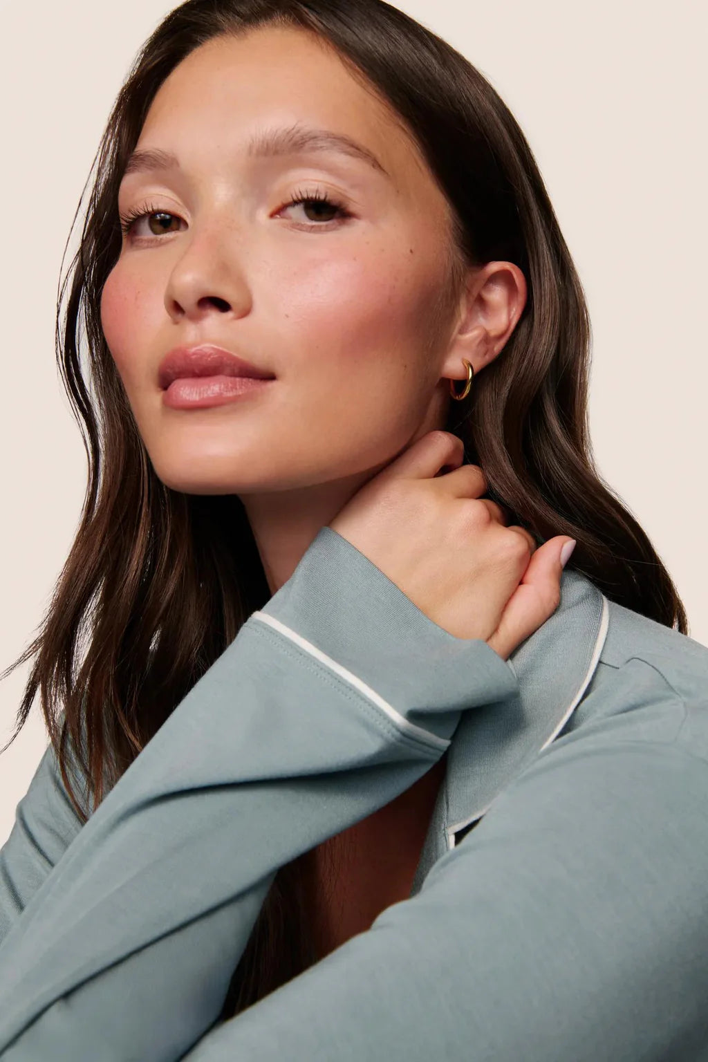 The PJ that started it all. Made from TENCEL™ Modal fibers and a touch of elastane, this buttery soft fabric is verified by OEKO-TEX® Standard 100, meaning it’s dyed with safe and non-toxic dyes. This relaxed long sleeve set features contrast piping, a button-front top with a notch collar and functional pocket, and a low-rise straight leg pant with a thin elastic waistband. Pairs well with our everyday lingerie and blissful ZZZ’s.