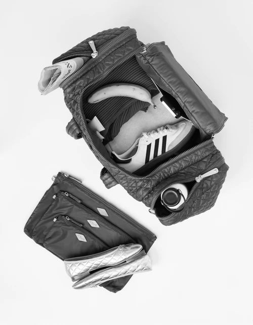 • Detachable, adjustable nylon crossbody strap