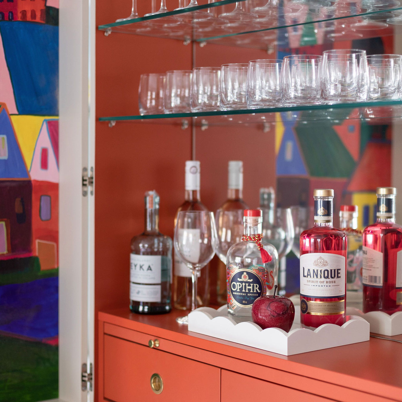 Our very pretty White Small Scalloped Tray is finished with 20 coats of high gloss lacquer, hand polished between each coat, this lovely tray is perfect as a small tea for two tray (or of course glass of wine for two!) or alternatively it is a perfect display tray for bathroom, bedside, kitchen or desk.